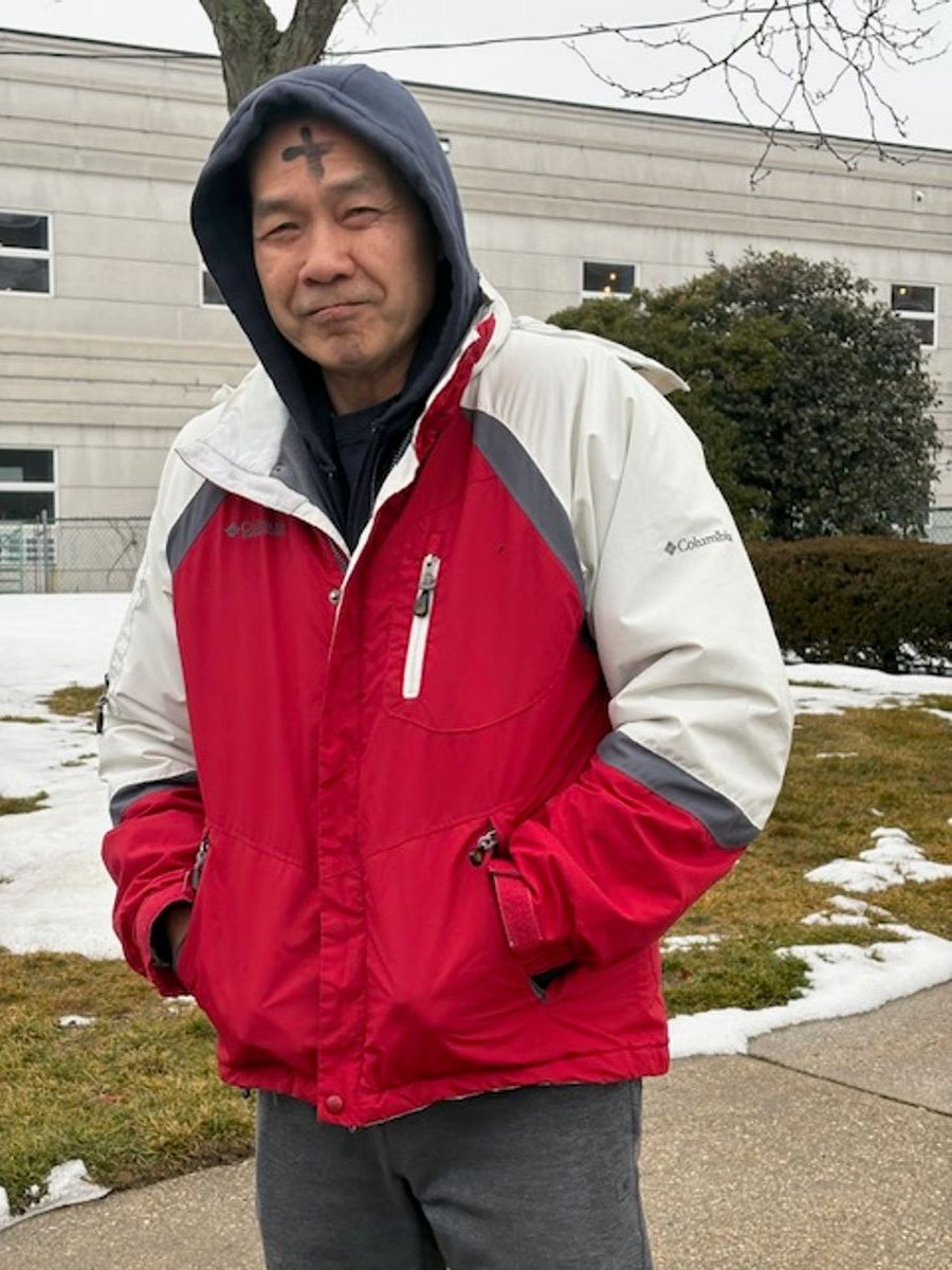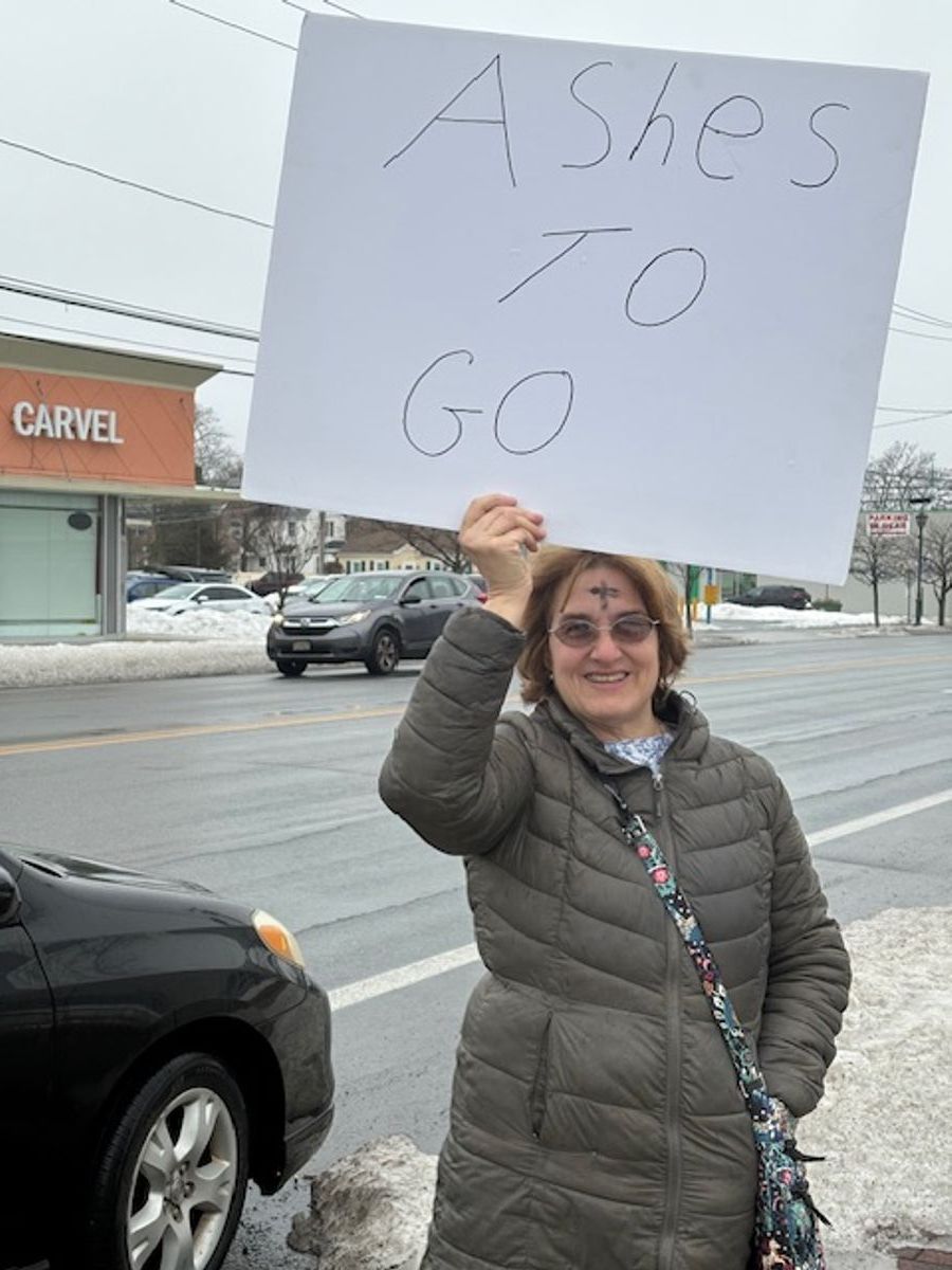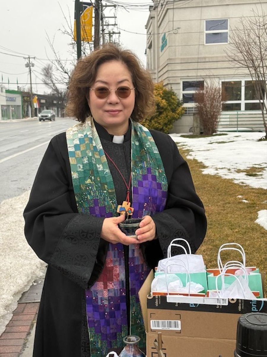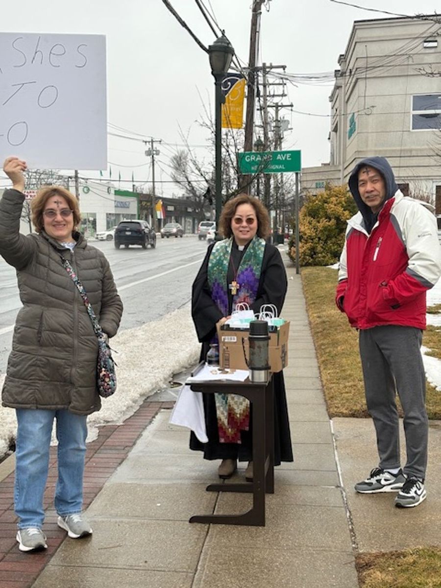 Pastor Miyeong and members of the church gathered outside to give Ashes to Go to passersby!